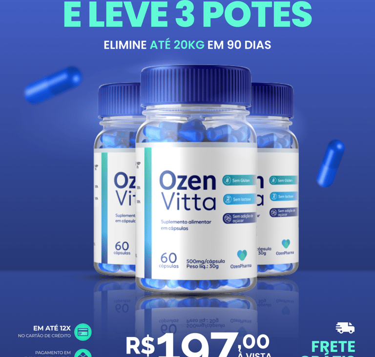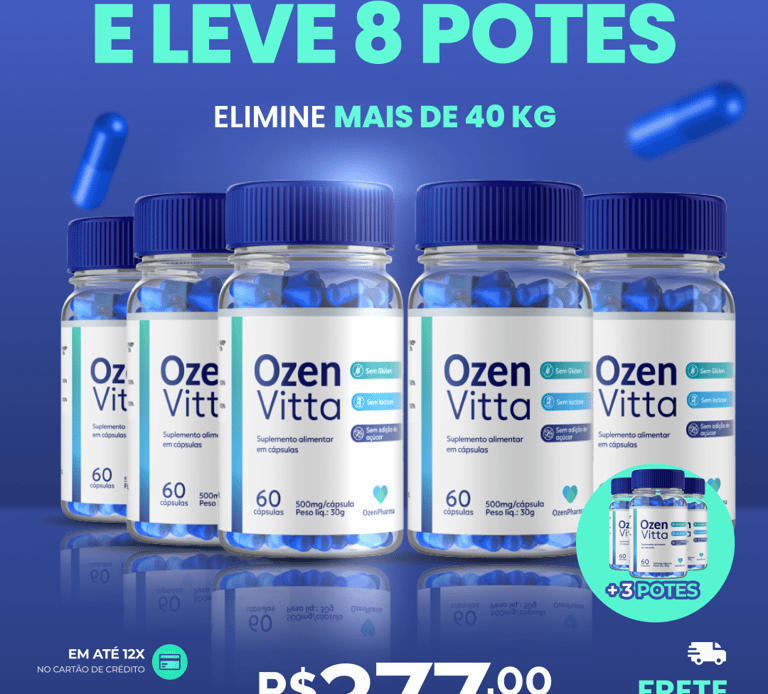 Os encapsulados OZENVITTA auxiliam você no seu emagrecimento e no controle do seu metabolismo.